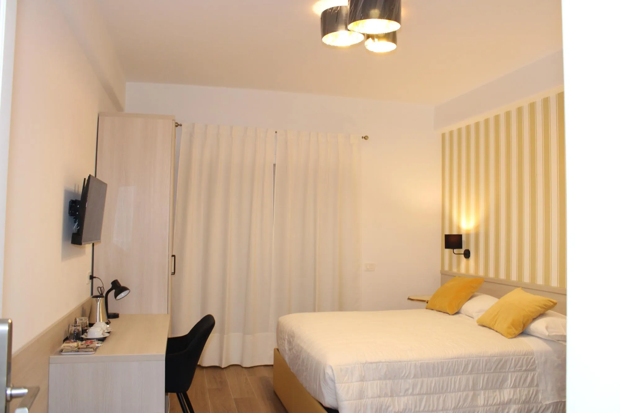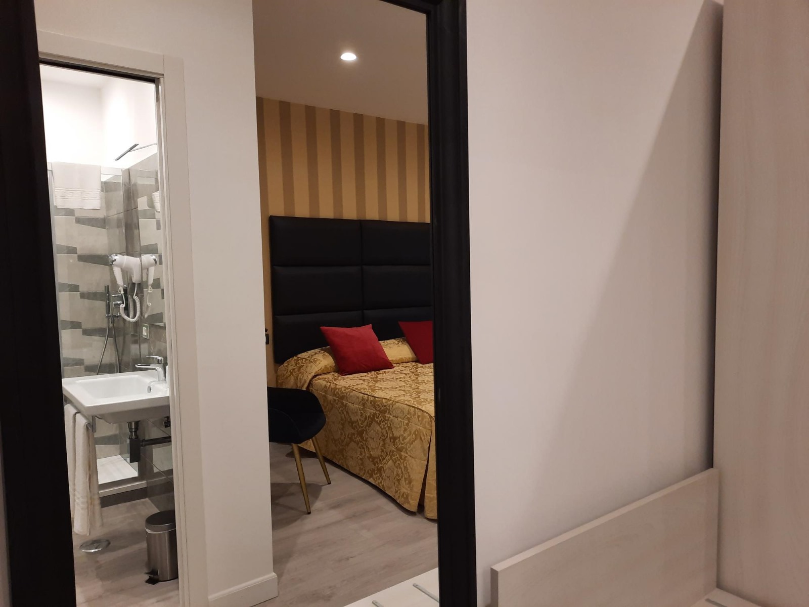 Camera accogliente e molto carina, nuova e ben arredata, letto comodo, doccia super grande, frigo, tavola da stiro, tutto il necessario x fare una piccola colazione in camera, cassaforte, il proprietario gentilissimo e molto disponibile anche x lasciare bagagli fino a tardo pomeriggio.