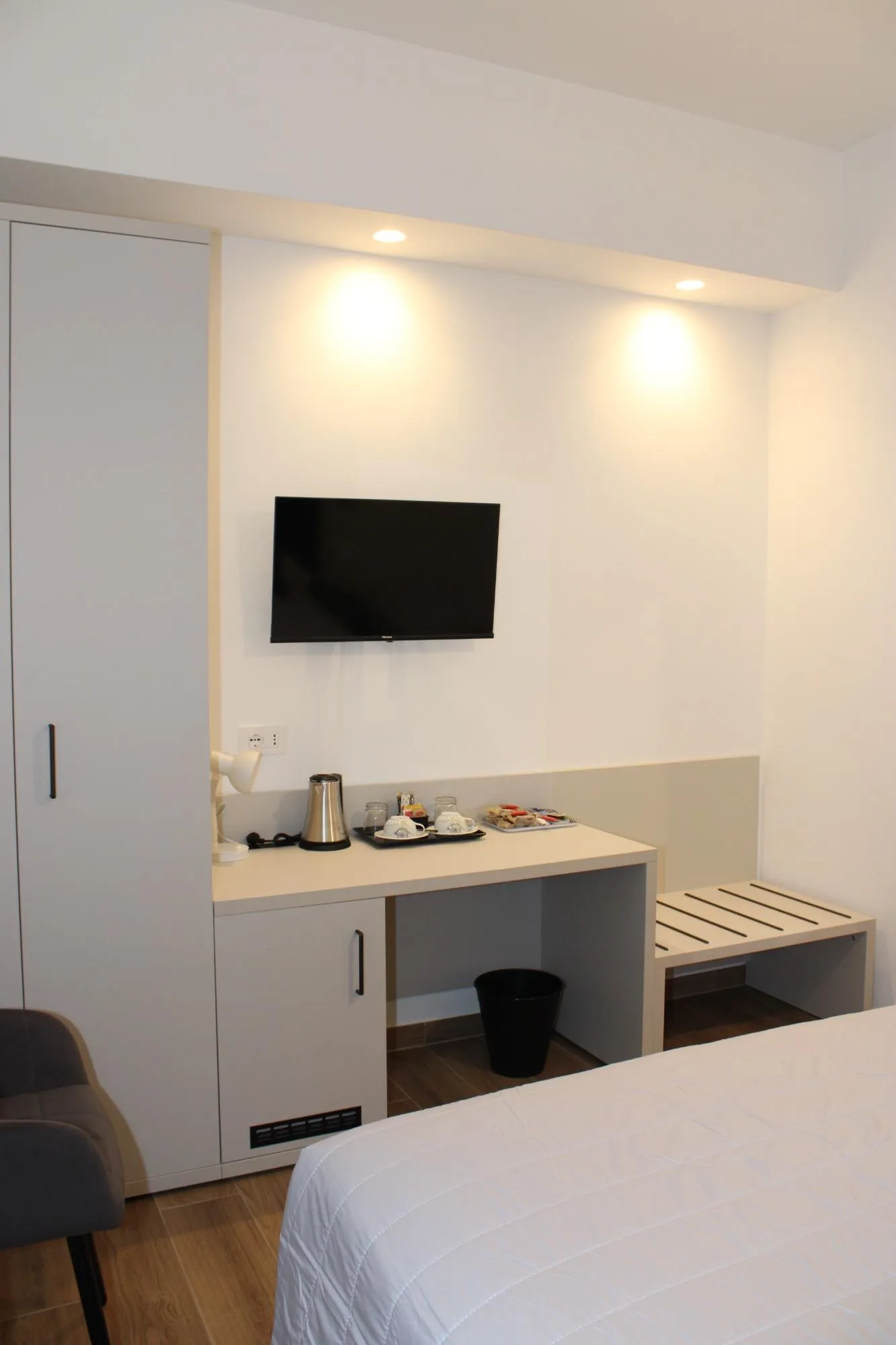 Le nostre quattro camere eleganti e confortevoli sono perfette sia per una fuga romantica che per un viaggio di lavoro. Ogni camera è climatizzata, con bagno privato, TV, frigobar e connessione Wi-Fi: tutti i comfort moderni per farvi sentire a casa. Gli spazi comuni sono pensati per offrirvi momenti di relax durante il vostro soggiorno.